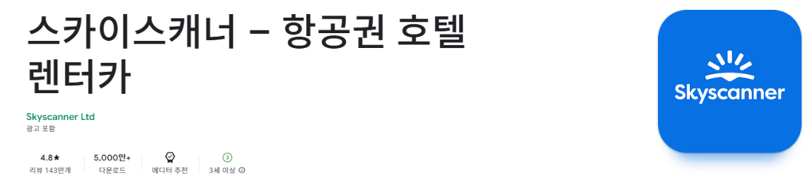 - 안드로이드 설치: 구글 플레이 스토어에서 “스카이스캐너 – 항공권 호텔 렌터카”를 검색하여 설치 버튼을 누르면 다운로드할 수 있습니다.