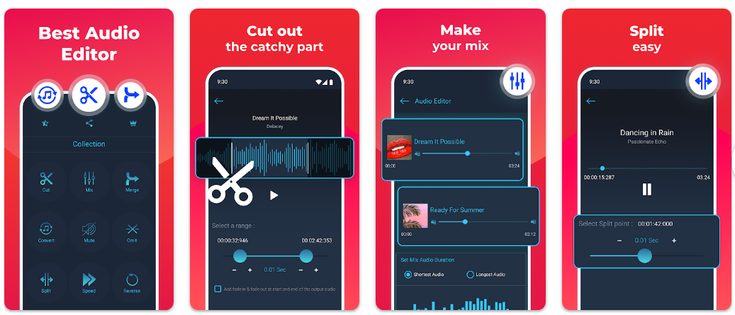 - 정밀 뮤직 커터: 내장 플레이어와 시각화된 파형을 활용하여 음악의 특정 지점을 밀리초 단위로 정확히 커팅합니다.