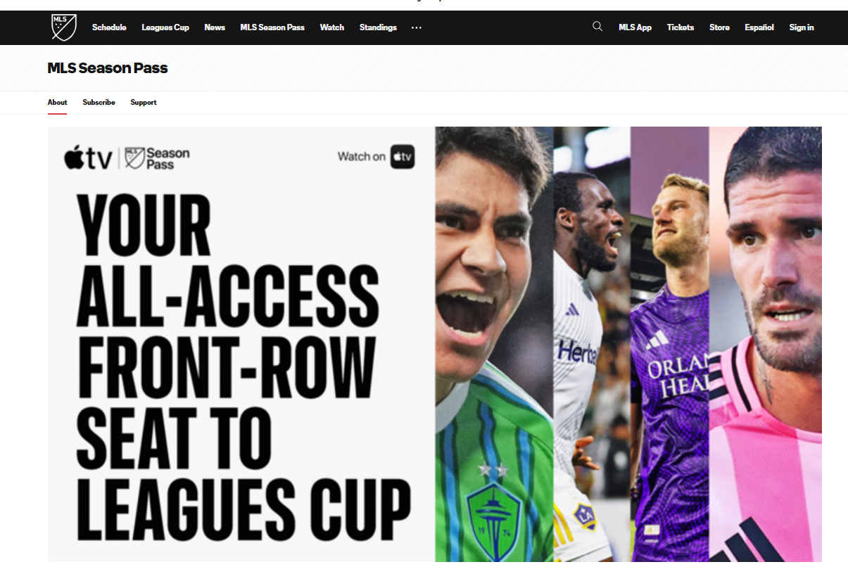- 전 세계적으로 모든 MLS 경기를 애플 TV 앱 내의 MLS Season Pass를 통해 스트리밍합니다. 지역 제한(블랙아웃)이 없으며, 정규 시즌, 플레이오프, 리그컵 등 모든 경기를 포함합니다.