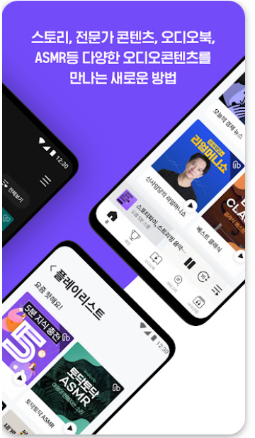 • 오디오북, 오디오 드라마, 강연, 어학, ASMR, 웹소설 등 다양한 장르 제공